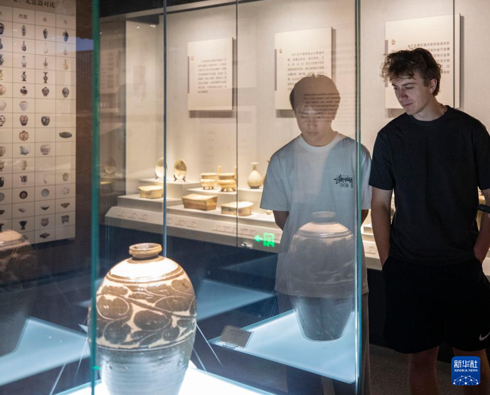 4月17日,中美“乒乓外交”亲历者朱迪·霍夫罗斯特(右三)在宁夏银川西夏陵博物馆参观。