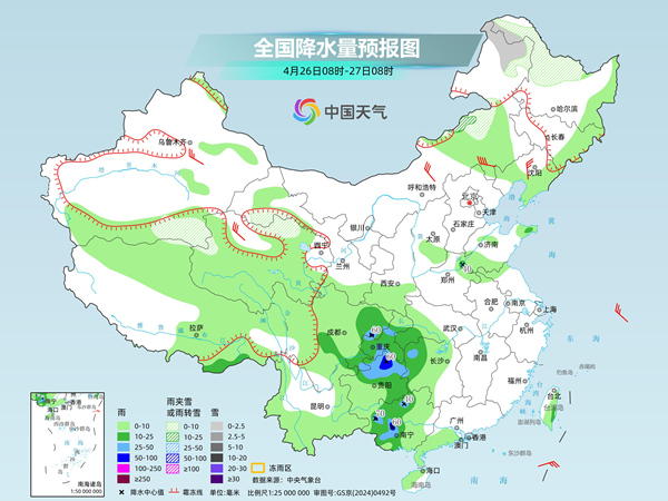 今天,明显降雨仍将集中在华南一带,其中白天雨势较强,夜间降水将逐渐停歇。明天,随着华南大部降雨停歇,南方大部地区将迎来近期降水最少的一天。后天起至29日,南方大部将自西向东再次迎来新一轮降水,西南地区东部、江汉、江南、华南等地先后有大到暴雨,局地有短时强降雨和雷暴大风等强对流天气。