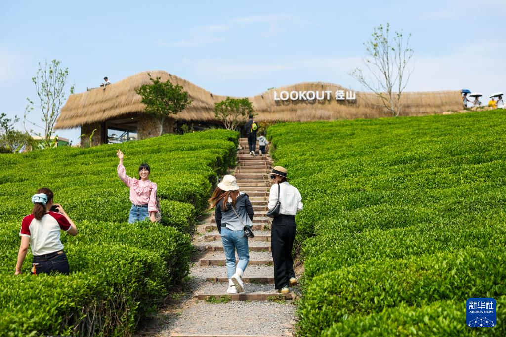 4月26日,游客在杭州市余杭区径山镇小古城村的茶山上游玩。