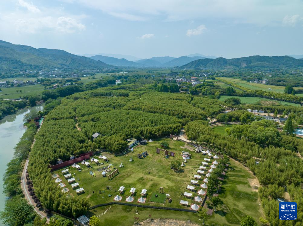 这是4月26日拍摄的位于杭州市余杭区径山镇小古城村的一处露营基地(无人机照片)。