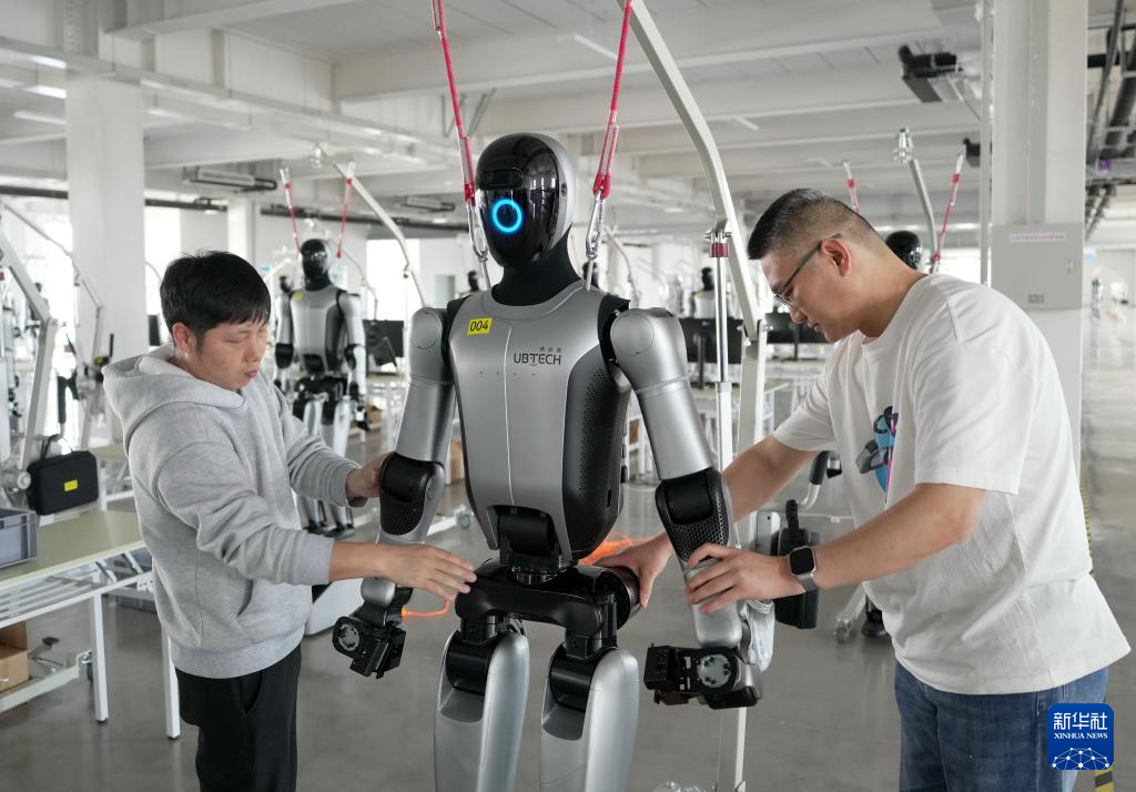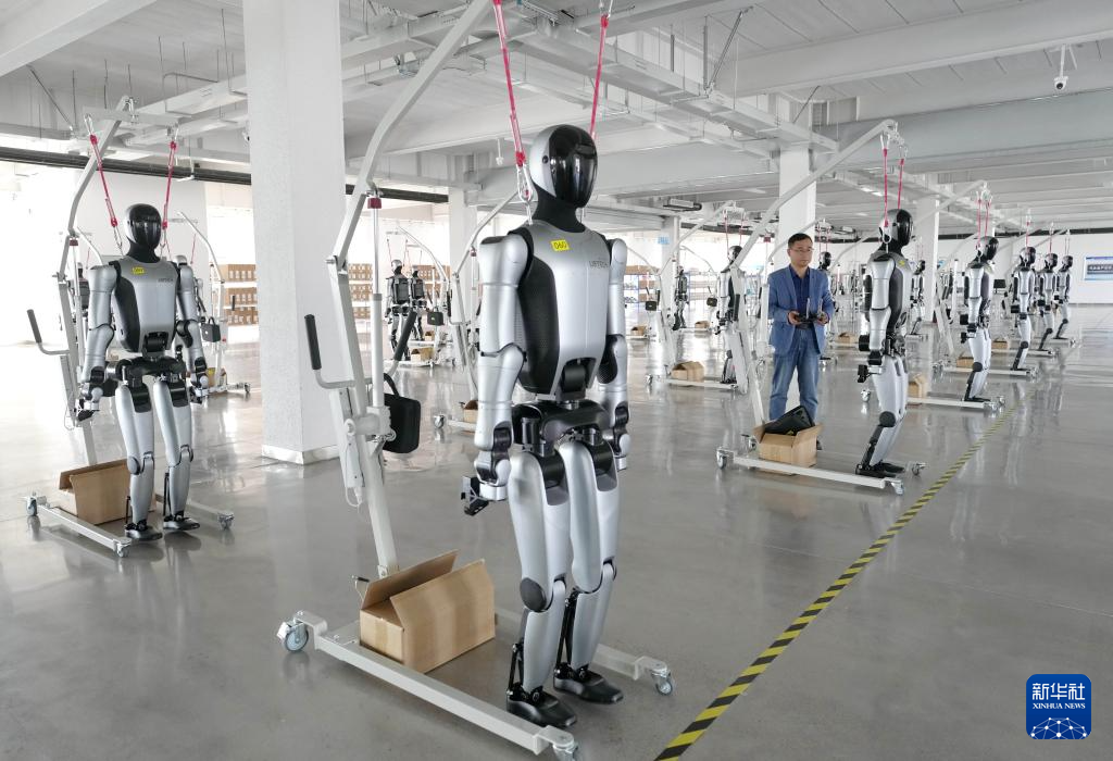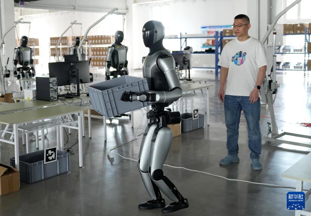 4月28日,秦皇岛市海港区秦皇岛小岛空间智能机器人产业基地的工作人员在对机器人进行具身智能训练。