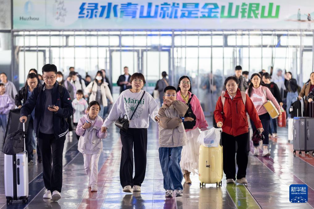 4月29日,在浙江湖州站候车大厅,旅客检票进站。