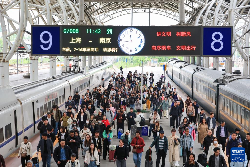 4月29日,抵达南京火车站的旅客准备出站。