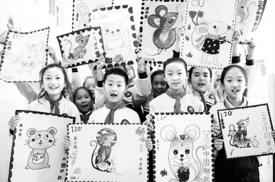 10月9日是世界邮政日。10月8日,内蒙古呼和浩特市玉泉区通顺街小学开展“生肖邮票文化创意设计”活动,让学生了解中国生肖邮票独特的艺术价值、文化内涵以及世界邮政发展的历程。图为学生在展示自己绘制的生肖邮票图案。