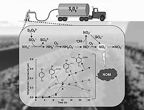 “这也是首次发现亚硝酸盐、铵氮可以在硫酸根自由基的作用下转化生成硝基芳香化合物等二次污染。”陆隽鹤说。