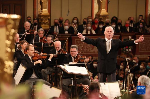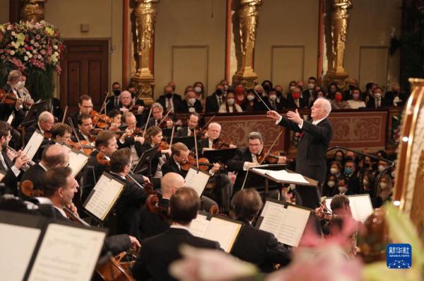 当日,维也纳爱乐乐团在奥地利维也纳金色大厅举行2022年新年音乐会。因为疫情防控措施,今年只有1000名现场观众。而2021年维也纳新年音乐会以无现场观众方式举行。