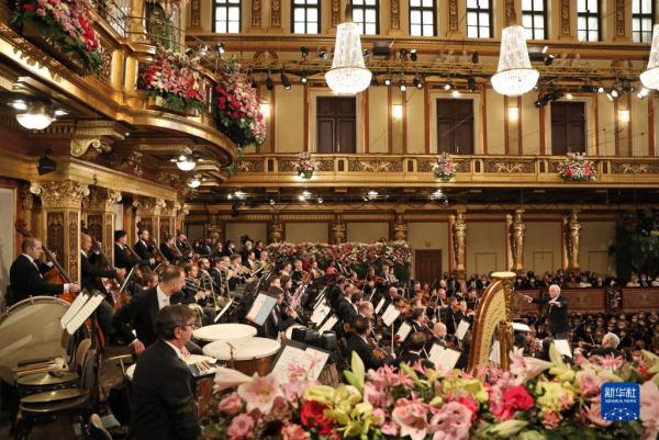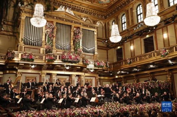 1月1日,维也纳爱乐乐团在奥地利维也纳金色大厅新年音乐会上演奏。