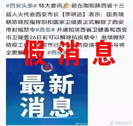 近期,网上传播“西安25日将全面解封..”经核实,官方未发布此类信息。广大市民群众,不信谣、不传谣,对网上传言注意甄别,不编造、不转发未经核实的信息,共同营造清朗的网络空间,维护良好的社会秩序。