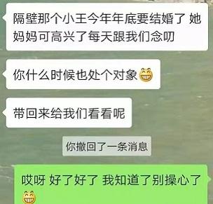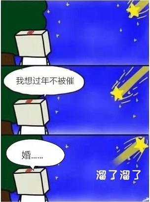 马上就要除夕了,比起别人各种买买买不同的是,我的一个好友最近忙着写写写,准确的说是各种抄:专抄应对七大姑八大姨各种催婚的花式“回怼”,忙的是不亦乐乎。说起来像是个笑话,可实际上这两年她的春节确实过得总和喜庆的气氛有点格格不入,自从相恋三年的男友分手后,三十岁的她就彻底“沦落”成了家里的重灾区,逢年过节招架不住的“催婚”,让她心有余悸。甚至前两年,她为了躲避催婚,新年求值班。