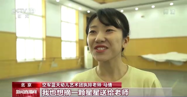空军蓝天幼儿艺术团执排老师马倩:排完练,孩子们会跟我说我也想摘一颗星星送给老师,因为老师很辛苦,这个让我心里面很温暖。