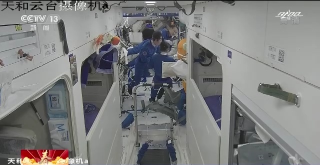 在遥远的中国的空间站里,三位航天员也能实时收看到春晚,航天员王亚平不仅看到了女儿的表演、听到了女儿亲切的呼唤,她和另外两名航天员还在零点钟声响起时,发出了来自太空的新春祝福。