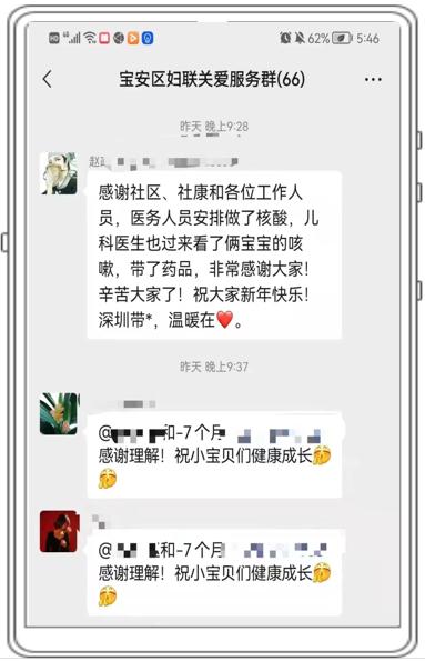 街道和社区即刻对双胞胎的情况进行评估,并快速协调石岩人民医院安排儿科医生带药上门。事情解决后,双胞胎的家长在群里发了信息——