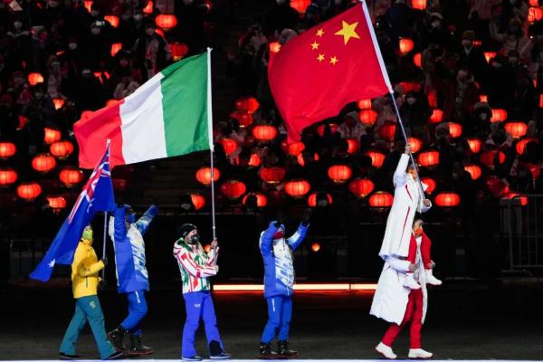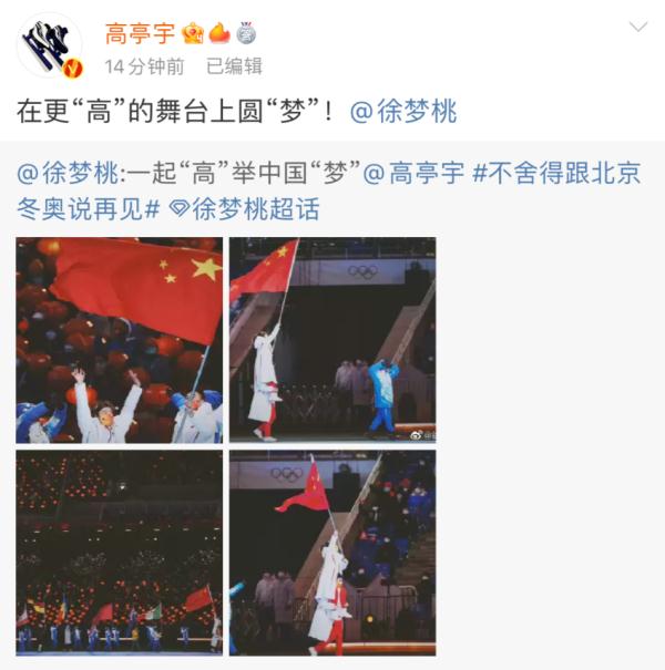 今晚(20日)第二十四届冬季奥林匹克运动会闭幕式在国家体育场举行。中国体育代表团旗手高亭宇将徐梦桃扛在肩上,高举五星红旗入场,现场沸腾,掌声雷动。