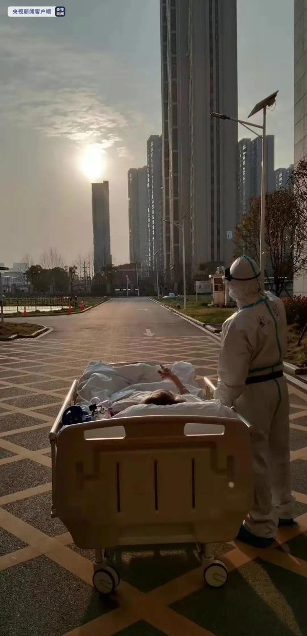2020年2月7日,上海第一支整建制援鄂医疗队——中山医院136人医疗队出征。2020年3月5日,在武大人民医院东院刘凯医生在护送罹患新冠肺炎的王爷爷做CT的途中,停下来,让已经住院近一个月的87岁老先生欣赏了一次久违的日落……落日余晖下的两个身影,温暖了亿万人:病人和医生,80+岁和20+岁,这个瞬间,刻骨铭心。