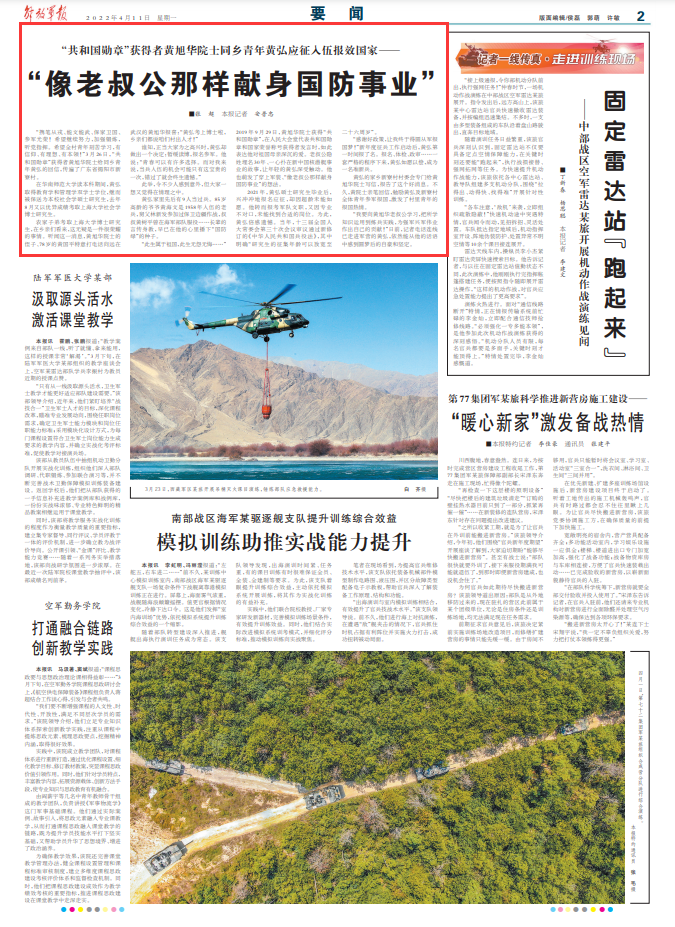 “我要向黄旭华老叔公学习,把所学知识运用到练兵实践,为强军兴军伟业作出自己的贡献!”日前,记者电话连线已走进军营的黄弘,依然能从他的话语中感到圆梦后的自豪和坚定。