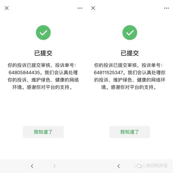 陈村向记者出示了向微信官方投诉不实消息的截图,令他无奈的是,不实消息仍在流传,“朋友告诉我,两篇文章已经10万+了。”