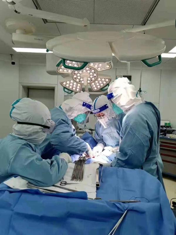 吉林大学中日联谊医院北湖医院医护人员在为隔离管控区急症患者进行急诊手术。(图片由被采访对象提供)