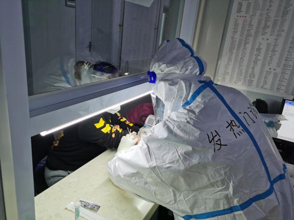 医护人员在吉林大学中日联谊医院发热门诊职守。(图片由被采访对象提供)