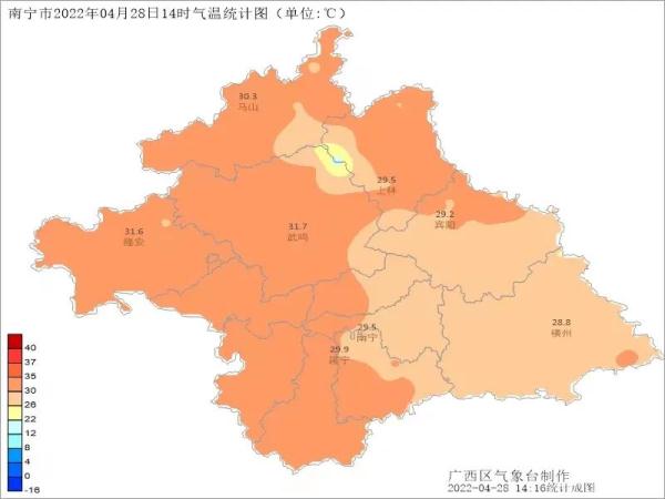 预计4月30日到5月1日,受高空槽、切变线和地面冷空气共同影响,南宁市自北向南有一次较强降雨、降温并伴有短时雷暴大风、冰雹等强对流天气过程,过程累计雨量全市大部30~60毫米,局部可达80毫米以上,各县(市、区)气温下降5~7℃。