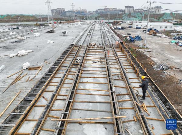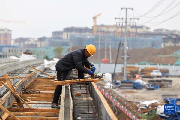 4月28日,中铁十一局的工人在雄安新区容西片区楼堤大桥施工。