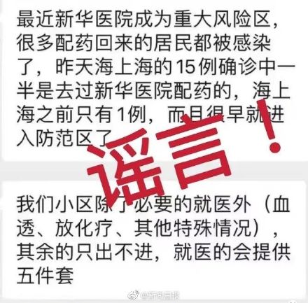 网传“新华医院成为重大风险区,昨天海上海的15例确诊中有一半是去过新华医院配药的,海上海之前只有1例,而且很早就进入防范区了。” 记者从上海交通大学医学院附属新华医院了解到,4月27日至5月3日间,新华医院没有初筛出地址为“海上海小区”的核酸异常者。经核查,同一时期,“海上海小区”病例,未发现与新华医院就诊有直接关联。 新华医院已向公安机关正式报案,将对造谣者依法追究法律责任。(上海网络辟谣)