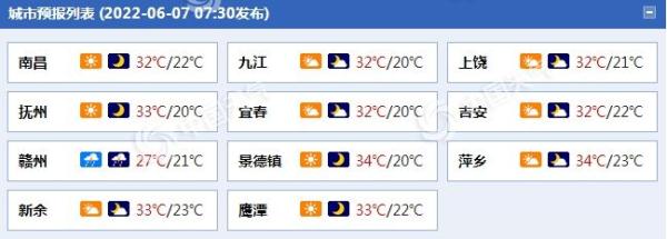 江西各城市天气预报。(来源:中国天气网)