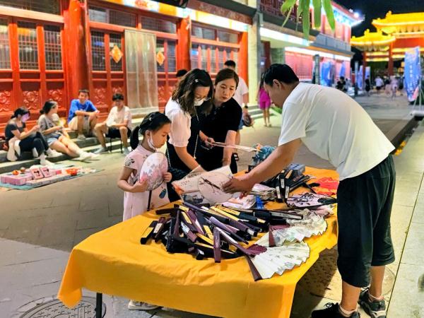 ↑市民在记忆一条街夜市休闲购物。白云飞摄