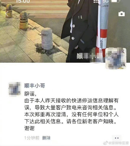 近日,网传“福田区所有快递停业静默3天”相关消息。经记者核实,该消息为假消息。请大家勿信谣,勿传谣! “接市邮管局通知,福田区所有快递停业静默3天。含(顺丰,邮政,三通一达)停止一切发件派件。”日前,有网友在微博发文称,福田区所有快递停业,引发网友关注。随后,一名快递工作人员在其朋友圈发文表示,福田区停运快递信息是其本人理解有误,并没有任何单位和个人下达此相关信息。经核实,微博关于“福田所有快递停业静默3天”的内容不属实。