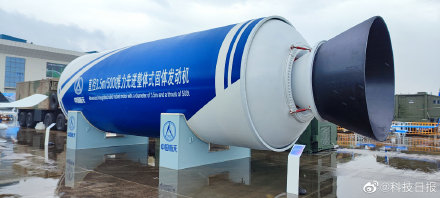 中国兵器航展大秀 记者从四院获悉,该发动机直径3.5米,装药量150吨,最大推力500吨,采用高压强总体设计、高性能纤维复合材料壳体、高装填整体浇注成型燃烧室等多项先进技术,发动机综合性能达到世界一流。