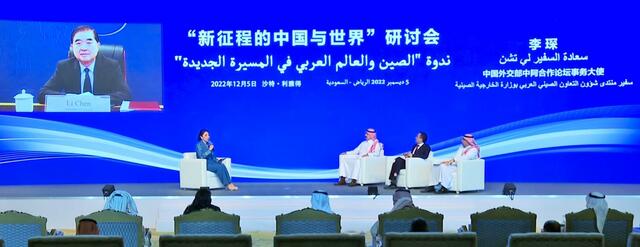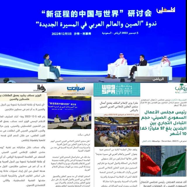 当地时间12月5日,由中国中央广播电视总台发起、30多家阿拉伯国家主流媒体参与的“新征程的中国与世界”中阿媒体研讨会在沙特阿拉伯首都利雅得成功举办。来自沙特、埃及、阿尔及利亚、巴勒斯坦、也门的政府官员、主流媒体负责人、相关机构代表与中国外交部中阿合作论坛事务大使等百余人,围绕新时代中国的新征程与阿拉伯国家的新机遇、推动构建中阿命运共同体的重要意义、中阿媒体如何推动中阿关系朝着更好方向发展等议题,展开深入交流和探讨。与会人士普遍认为,中共二十大擘画了中国未来发展的蓝图,将为阿拉伯国家发展提供参考与借鉴,中阿媒体加强交流合作将助力中阿关系迈上更高水平。