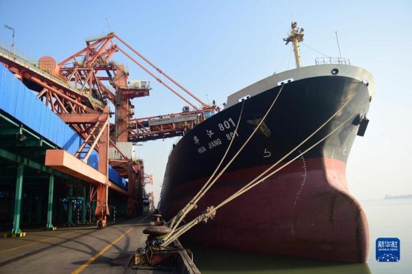 1月8日,船舶在黄骅港码头装运煤炭。