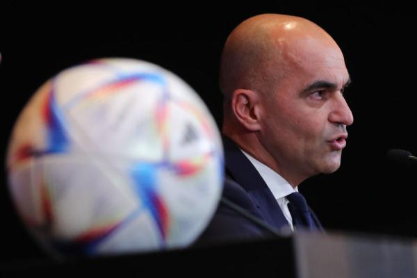 11月10日,时任比利时国家队主教练的罗伯托·马丁内斯在卡塔尔世界杯新闻发布会上。新华社记者 郑焕松 摄