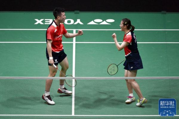 ↑郑思维(左)/黄雅琼庆祝比赛胜利。新华社记者 朱炜 摄