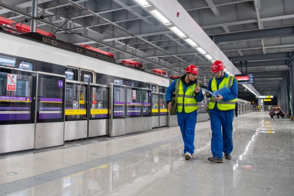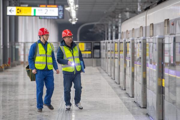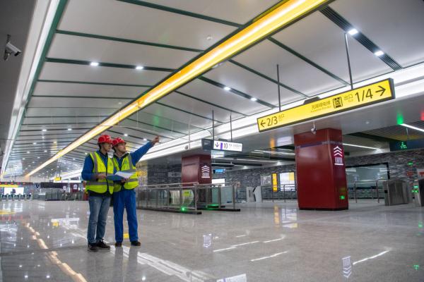 1月16日,在中铁广州局承建的重庆轨道交通10号线曾家岩车站,工作人员在车站开通前进行巡检作业。