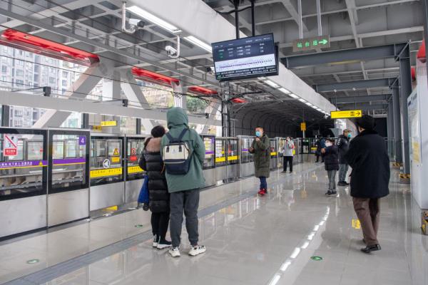 1月18日,在中铁广州局承建的重庆轨道交通10号线曾家岩车站,乘客们正在等候轨道列车。