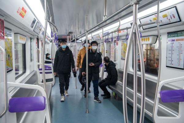 1月18日,乘客们正在搭乘重庆轨道交通10号线列车。
