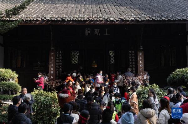 1月28日,在四川成都杜甫草堂工部祠,人们手捧红梅祭拜杜甫。