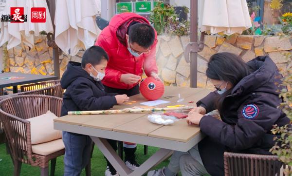 舞台另一边,还有不少小朋友正在自己手作灯笼,有的专心致志自己完成,有的则是一家人齐上阵,享受难得的亲子时光。