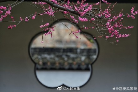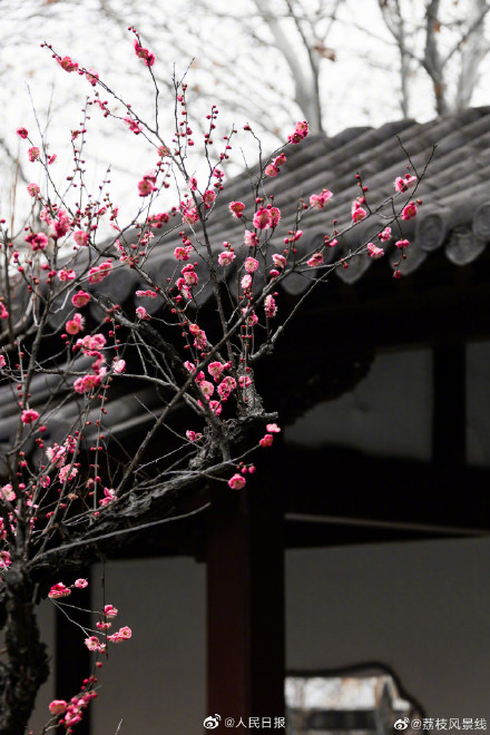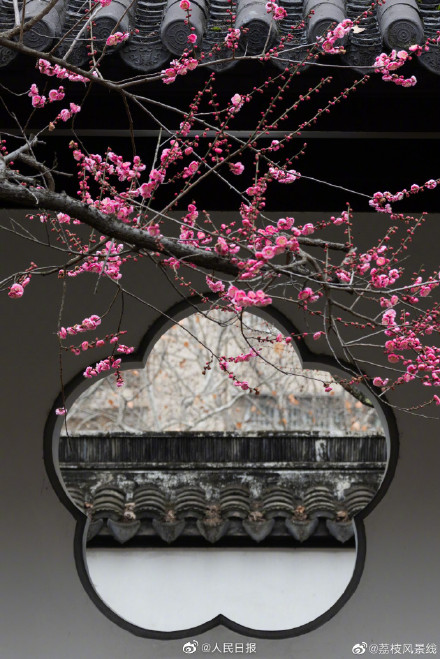 近日,南京雨花台梅岗多株梅花盛放,朵朵梅花展露烂漫笑颜迎接春天。园林建筑与轻盈淡雅的梅花相互映衬,别有一番古风韵味。暗香浮动,令人沉醉。