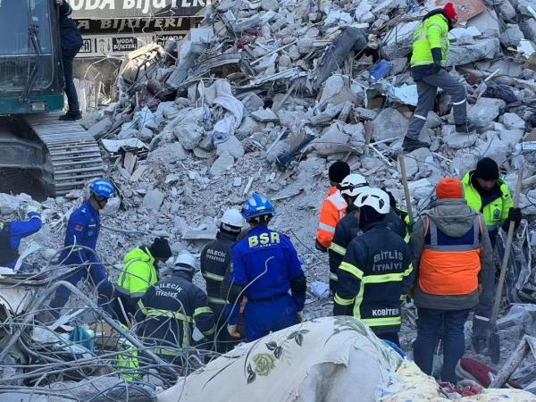 2月10日,土耳其地震救援工作进行,来自中国的蓝天救援队等救援力量在前线持续作业。