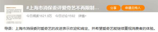 据上海市消费者权益保护委员会消息,2月20日上午,爱奇艺通过官方微博发布关于爱奇艺会员服务优化情况说明。