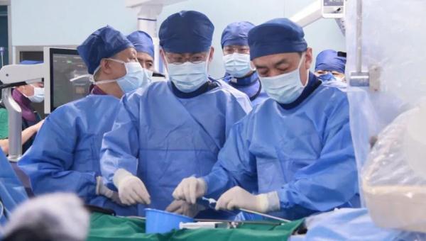 中国医学科学院阜外医院心律失常中心主任姚焰(右一)带领团队完成内地首例FARAPULSE脉冲电场消融系统“先行先试”手术。