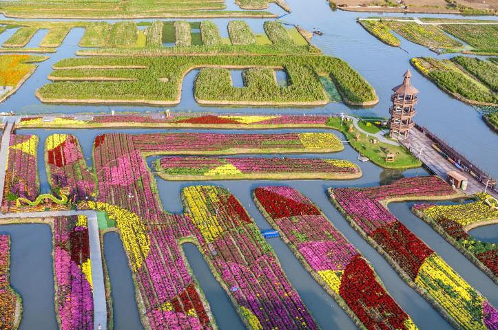千垛景区菊花竞相开放 宛如彩色迷宫曲折蜿蜒