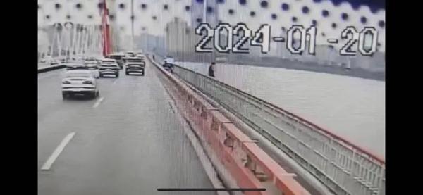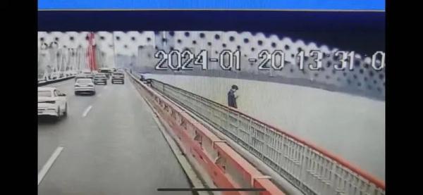 下午1点半左右,当车辆行驶至西兴大桥时,虞剑注意到一名黑衣男子站在非机动车道护栏外,疑似有轻生的迹象。虞剑心里觉得不对劲,便下意识地放慢了车速。