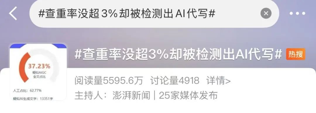 “当前AI率检测是AI技术融入学术领域的初期表现,其标准与技术均在发展和完善过程中。”中南大学讲师关耳(化名)分析道。她认为,各高校的探索实践也反映出,在学术层面,一个普遍适用的指导性标准尚未完全形成。