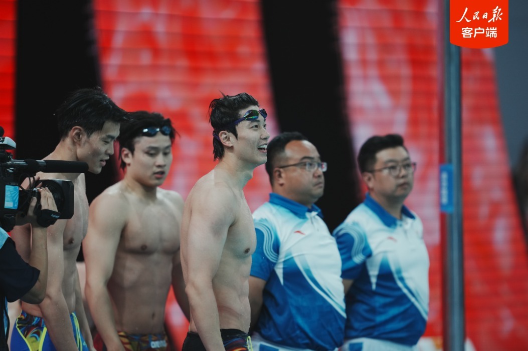 全运会游泳男子4X100米自由泳接力决赛,浙江队何峻毅 、汪顺 、沈加豪、潘展乐出战,以3分15秒01的成绩夺得金牌,汪顺夺得全运会第16枚金牌,潘展乐夺得本届全运会首金,河南队和中国公安体育协会获得二三名。