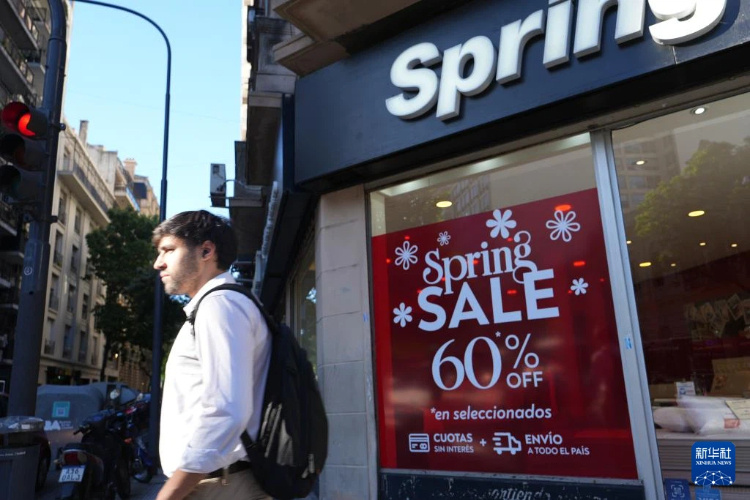 11月14日,市民从阿根廷首都布宜诺斯艾利斯的一家家具店前走过。新华社记者 张铎 摄