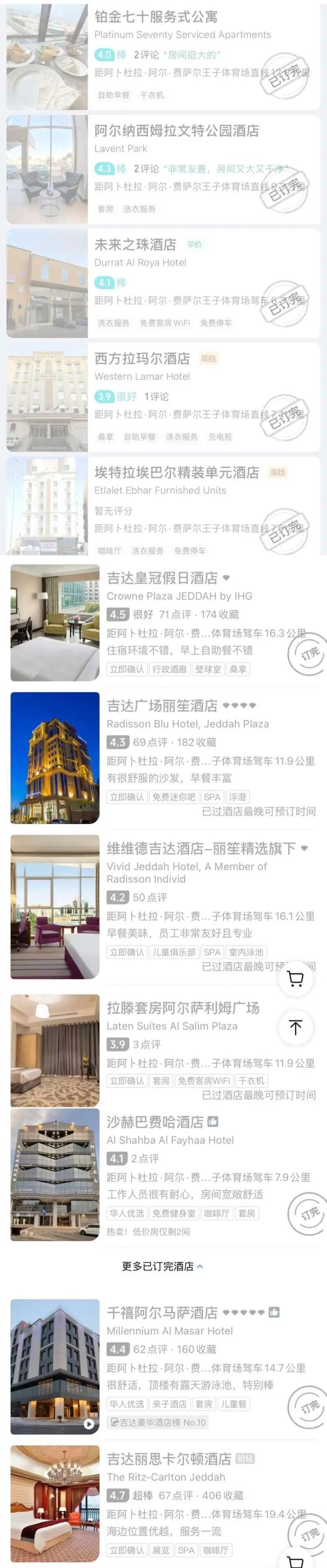 据中青报·中青网记者观察,多个中文主流旅行平台上,决赛日前后阿卜杜拉·阿尔·费萨尔王子体育场周边各大酒店已被“预订一空”。