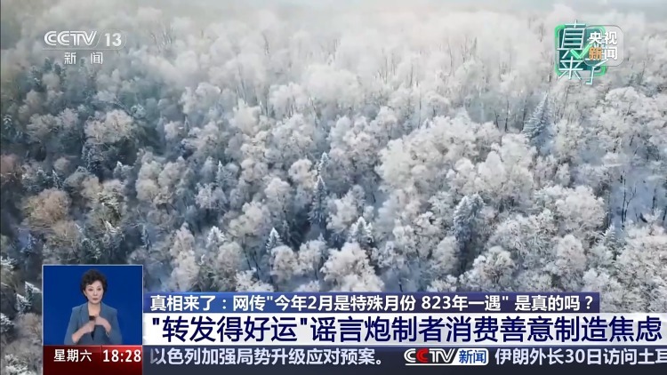 北京师范大学文学院民间文学研究所副教授 唐璐璐:我们看里边是非常基础的一个数学逻辑,就是每个平年的2月都有28天,我们一周是7天,所以28除以7等于4,这是一个非常简单的小学的数学题,这就意味着每个平年的2月,我们其实都有4个完整的周一到周日。所以这并不是一个罕见的现象,而是在每个平年的2月都普遍出现的,这是一则非常典型的网络时代的数字谣言。