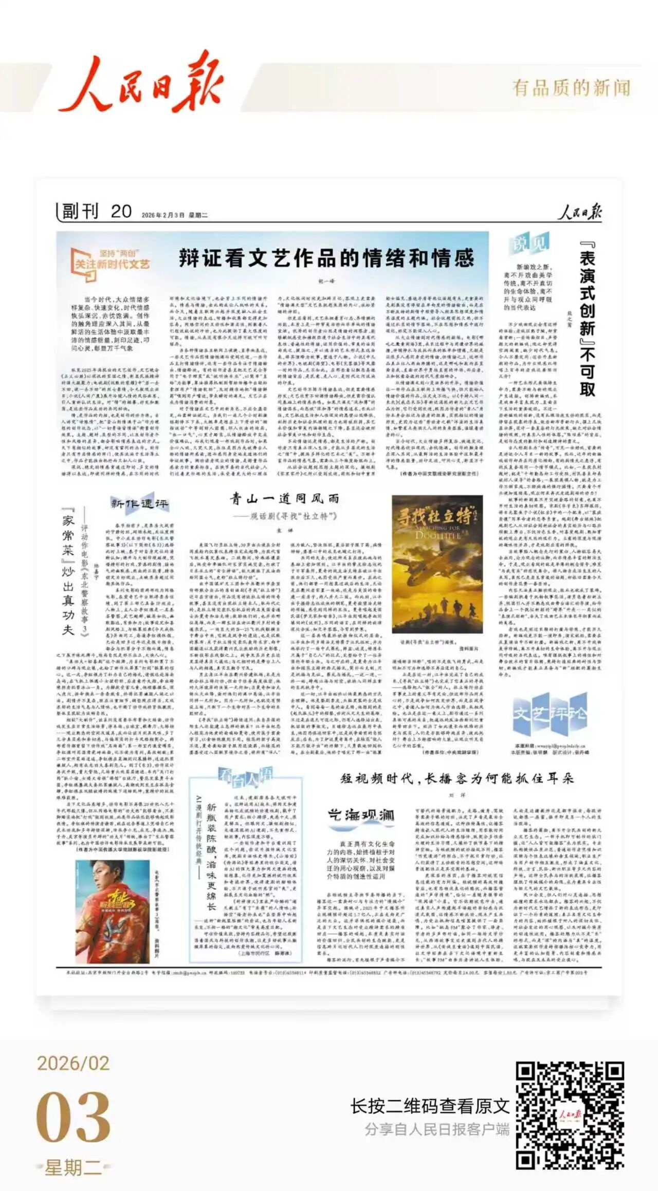 对于情绪在文艺中的新角色,不应全盘否定,而需辩证视之。当我们一连几个小时刷微短剧停不下来,大概率是想在上下滑动的“拇指运动”中等到好人团圆、坏人伏法的结局,“出一口气”,心里才踏实,从情绪释放中完成价值确认。而我们观看一部戏剧作品时,如果全心入戏,又哭又笑,往往是因为先被舞台人物的情绪所感染,进而感同身受地走进他们的命运故事。调动读者观众的情绪,是衡量作品感染力的重要标准。在快节奏的当代社会,人们过着更忙碌的生活,承受着更大的心理压力,文化休闲时间更加碎片化,客观上更需要“情绪满足型”文艺来抚慰焦虑的内心,放松紧绷的神经。